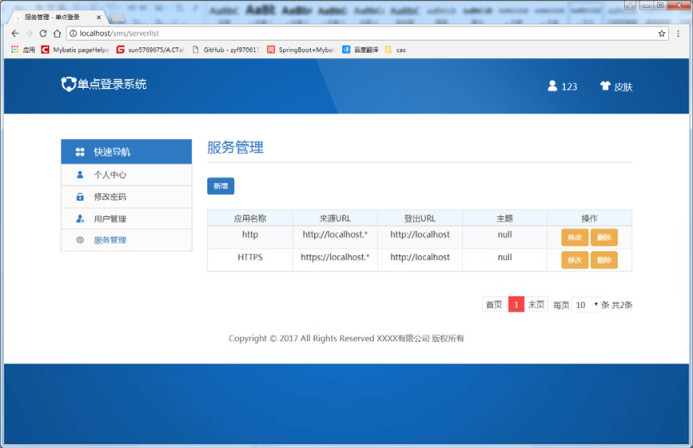 管理可接入单点登录的应用来源,管理登录验证后的跳转和登出之后的跳转地址